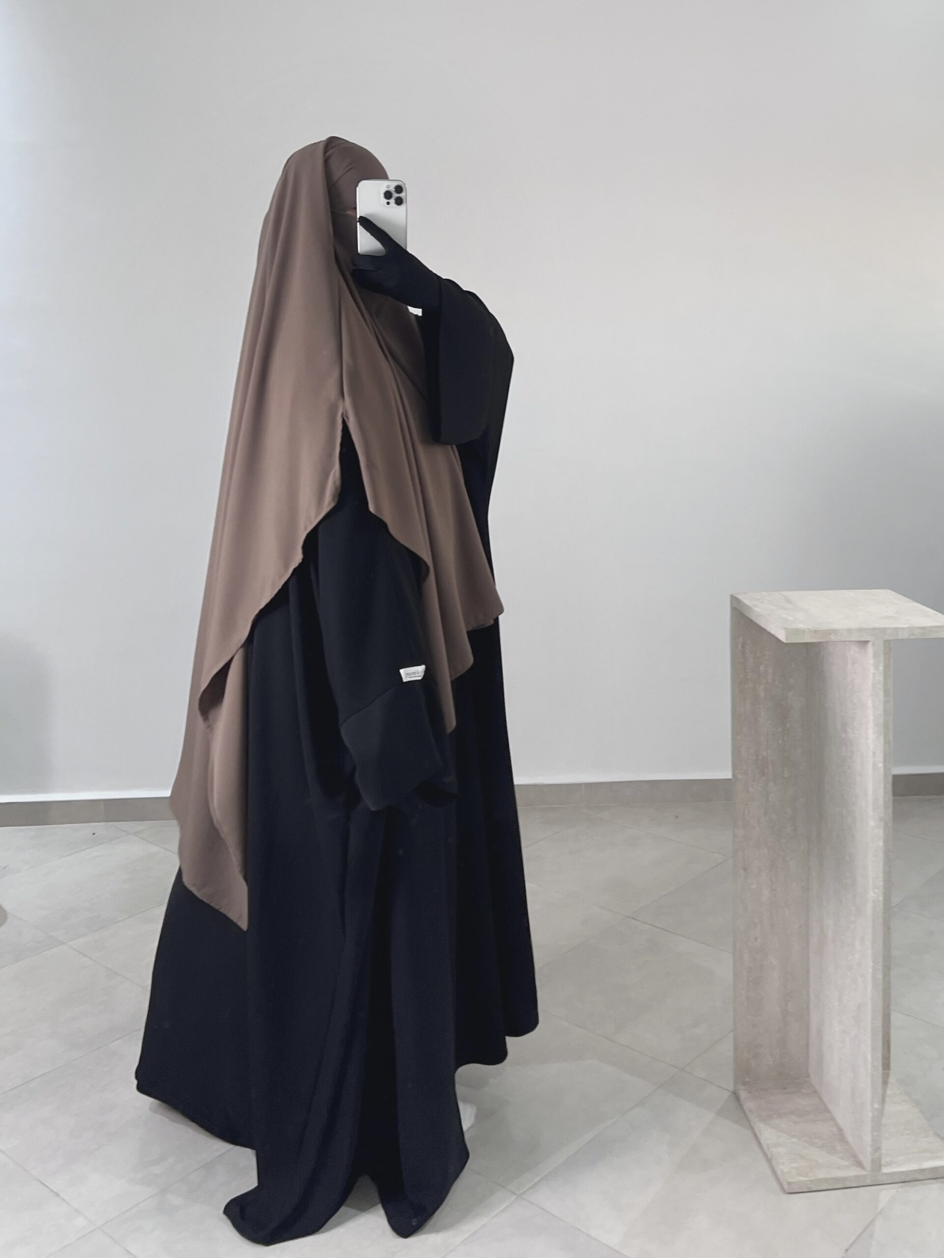 - Design carré avec fentes latérales : Contrairement aux coupes classiques en pointe ou arrondies, ce khimar se distingue par sa coupe carrée innovante, offrant une silhouette moderne et structurée. Les fentes sur les côtés permettent une plus grande liberté de mouvement tout en conservant un style mastour.