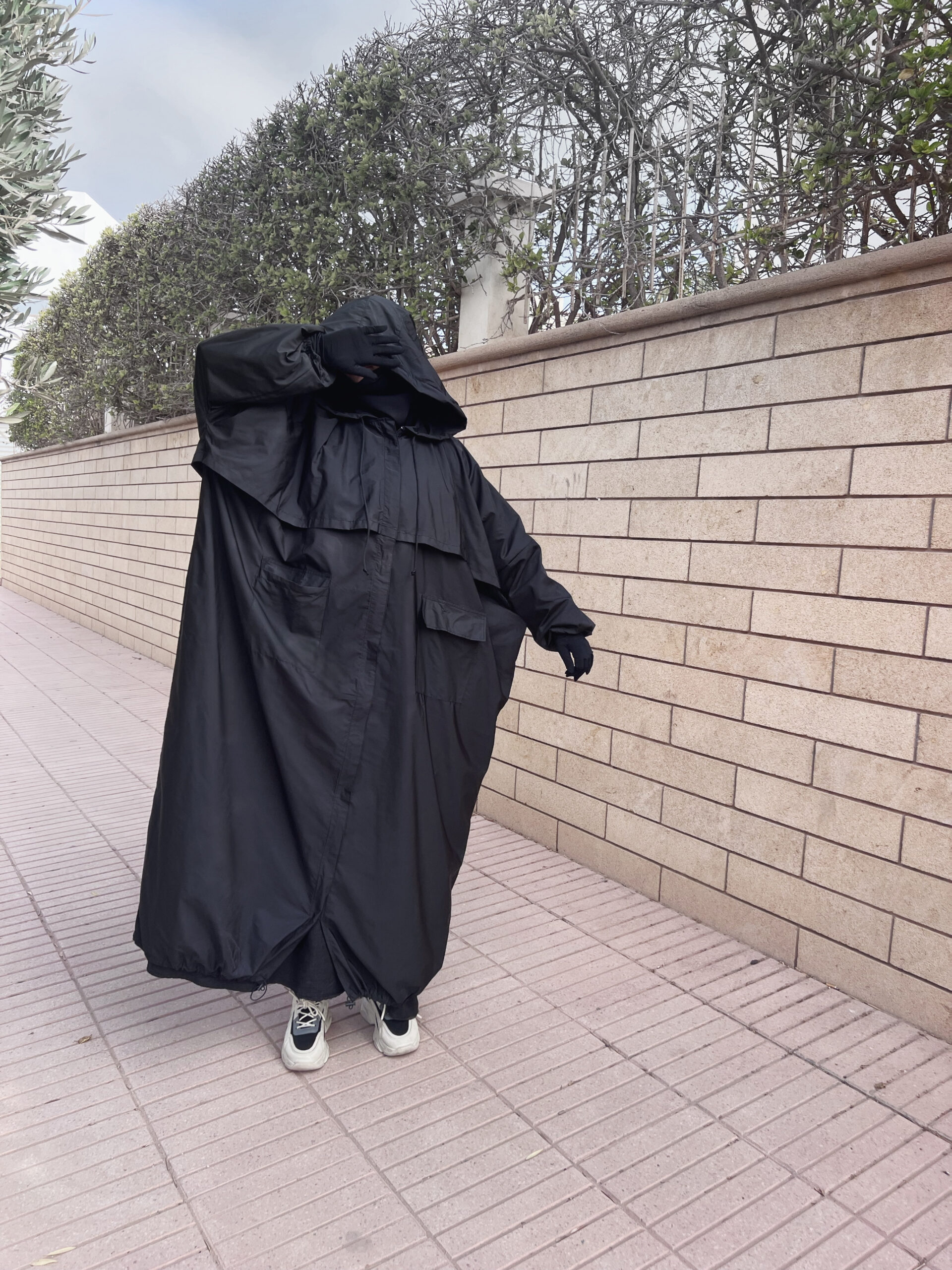 Les élastiques fins aux poignets empêchent l’eau de pénétrer, tandis que ses deux grandes poches pratiques sont parfaites pour garder vos essentiels à portée de main. Un cordon ajustable au bas vous permet de resserrer l’abaya, garantissant que l’eau ne vous touche pas, même dans des conditions humides.