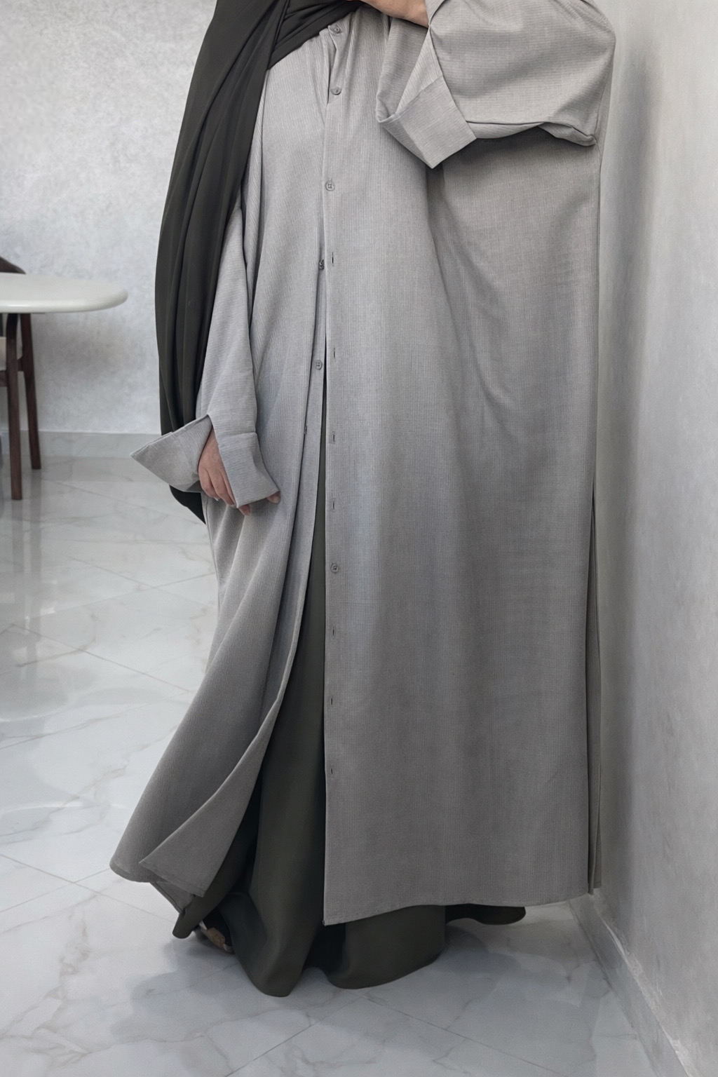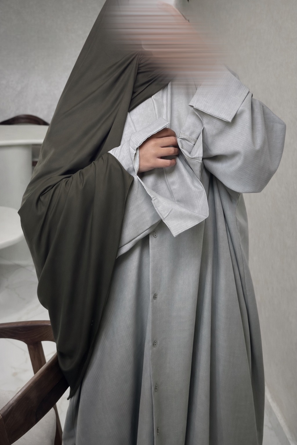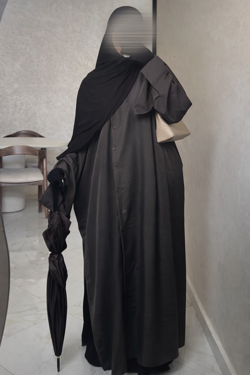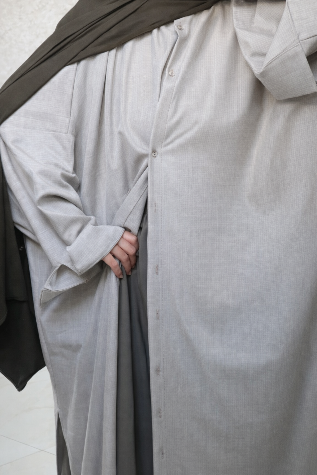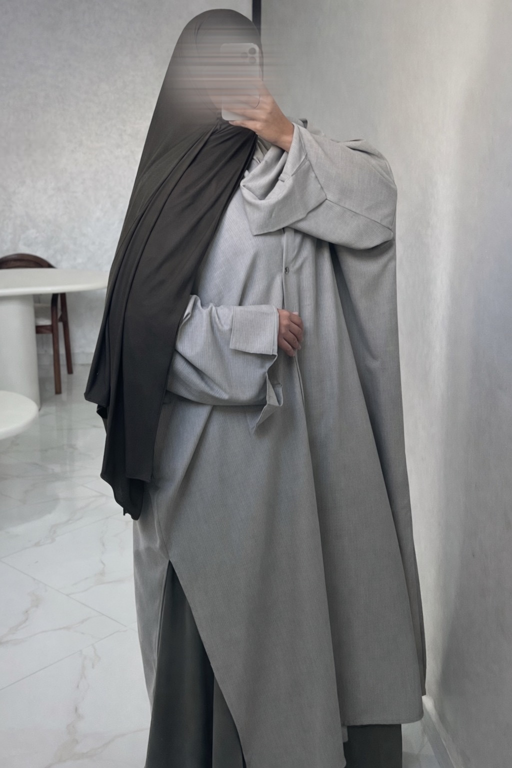 Les fentes permettent aussi de la superposer facilement avec une jupe, une abaya ou un pantalon large.